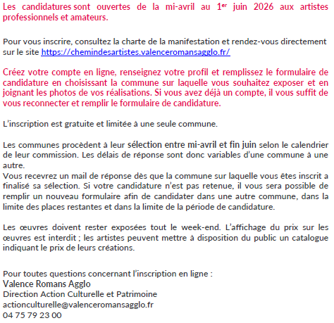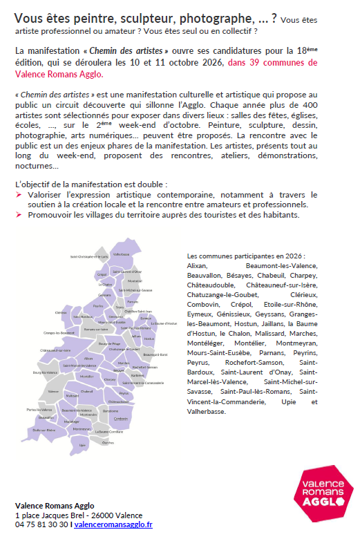 Appel à candidature – CHEMIN DES ARTISTES – Valence Romans Agglo